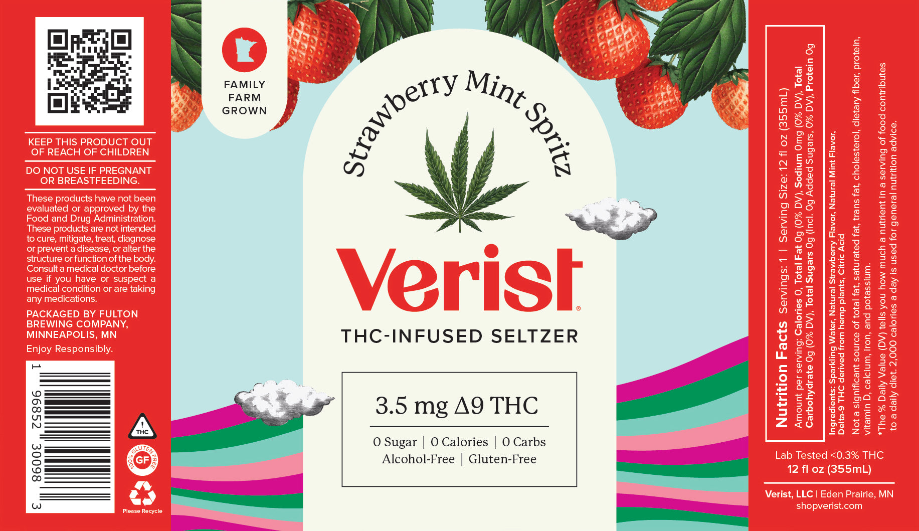 - Ingredients (Strawberry Mint): Sparkling Water, Natural Strawberry Flavor, Natural Mint Flavor, Delta-9 THC Derived From Hemp Plants, Citric Acid