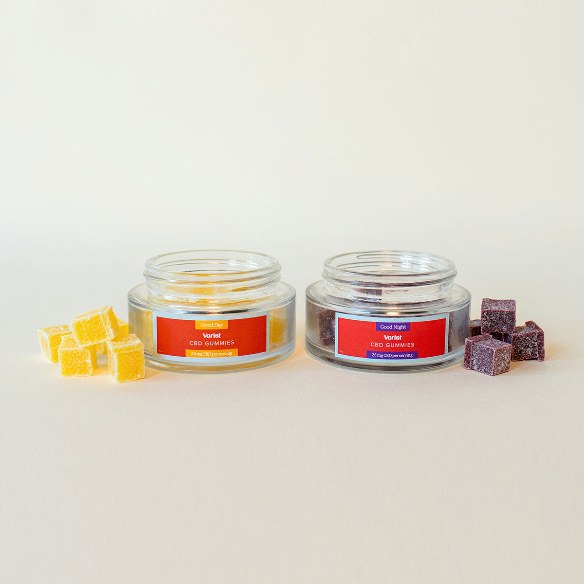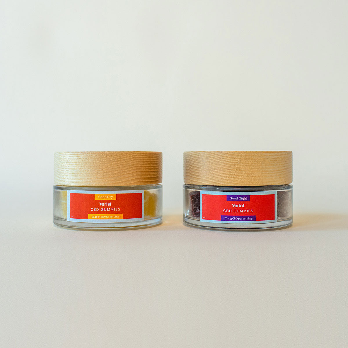 - 4-oz glass jar, 15 gummies per container