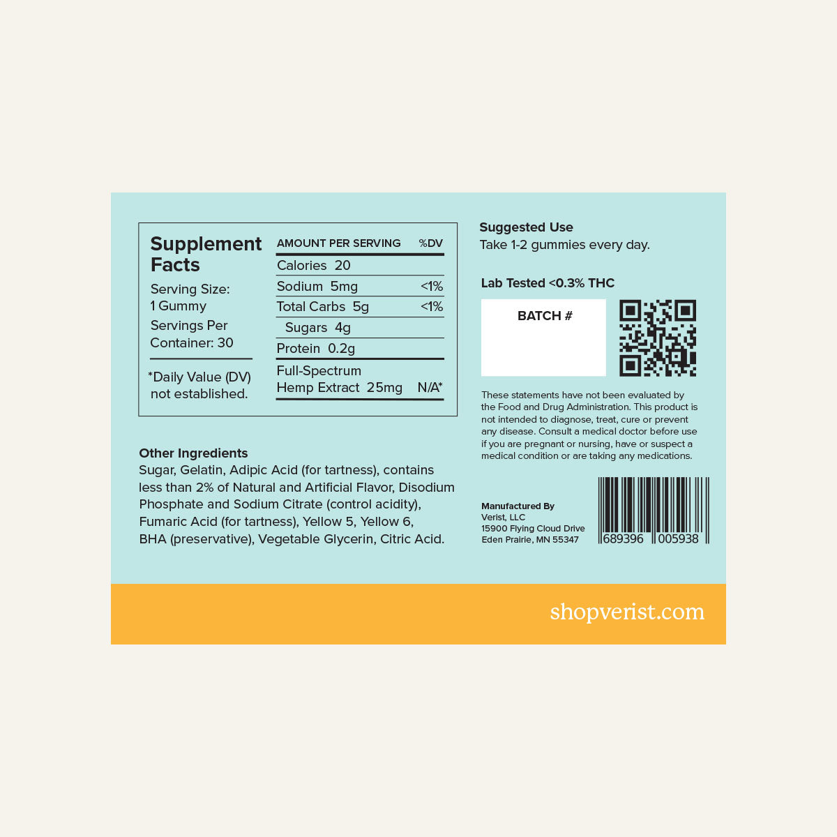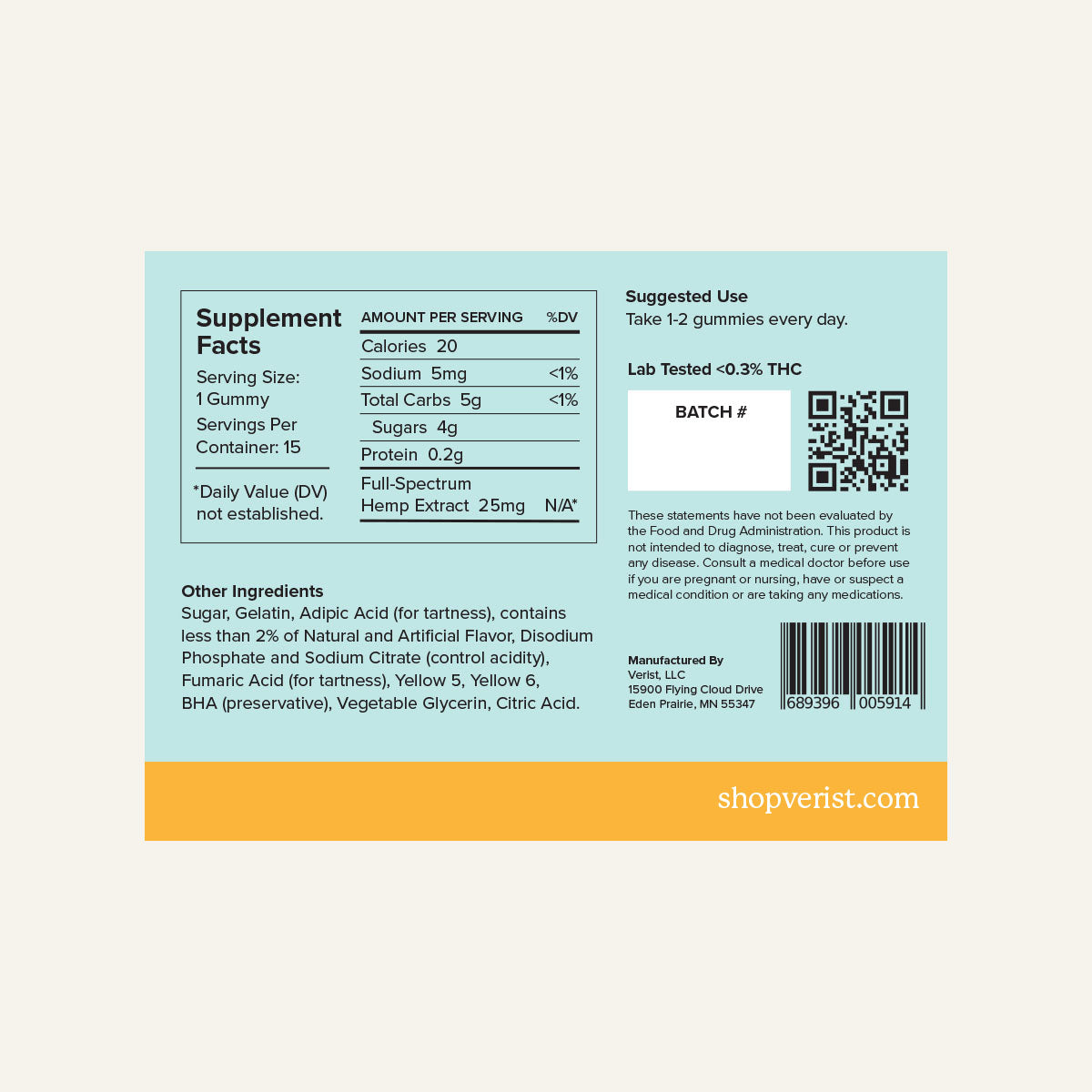 Sustainability matters, so we made refilling your lemon CBD gummies as minimally impactful as possible. Available in 15, 30 and 60 gummy quantities, our fully compostable refill packages let you pop the gummies in your jar or use them right out of the bag. Contains 25 mg per gummy.
