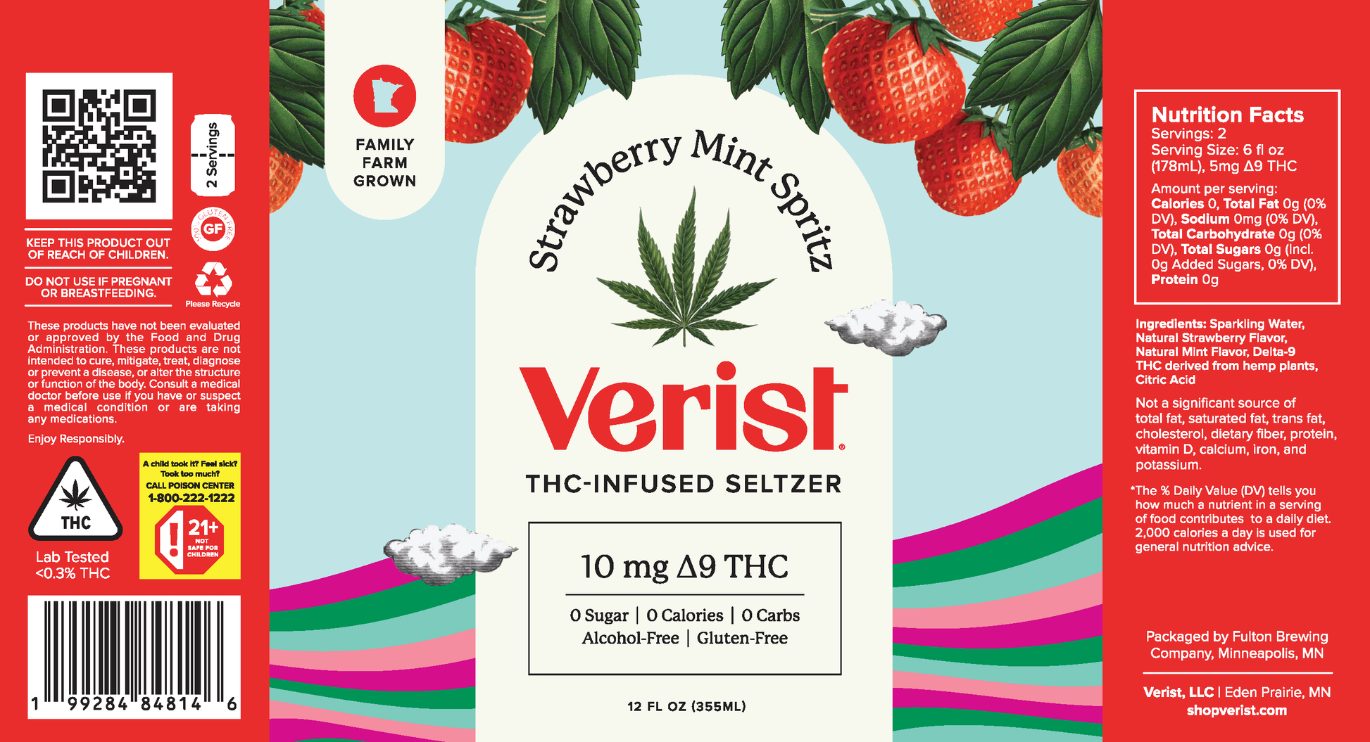 Sparkling Water, Natural Strawberry Flavor, Natural Mint Flavor, Delta-9 THC